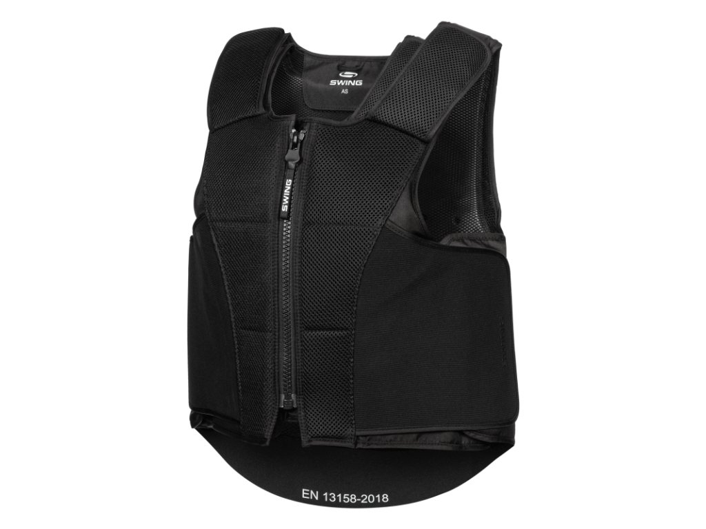 Chránič tela Swing P24 Max - bezpečnostná vesta, ktorá stanovuje nové štandardy v jazdeckom športe. Spĺňa najvyššie bezpečnostné normy EN 13158:2018 Level 3 a BETA Standard 3 a ponúka komplexnú 360° všestrannú ochranu pre maximálnu bezpečnosť.