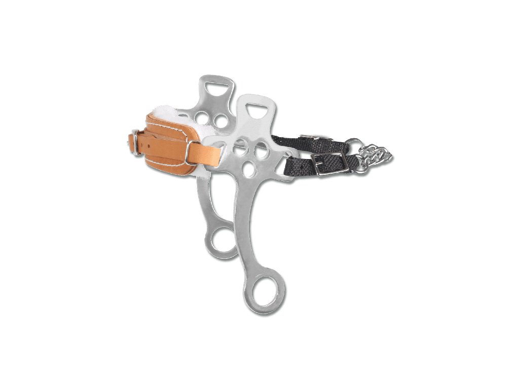 Kovové ramená, vystužený remienok na nos z kože, nylonovy remienok k reťaze.