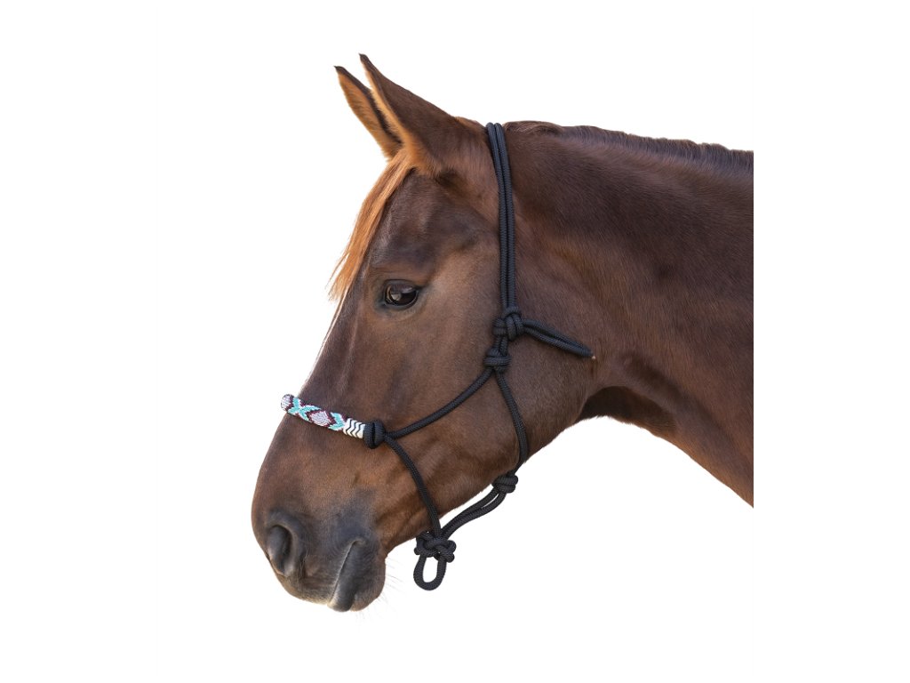 Elegantná viazaná ohlávka s dvojitou čelenkou a dvojitým nánosníkom.